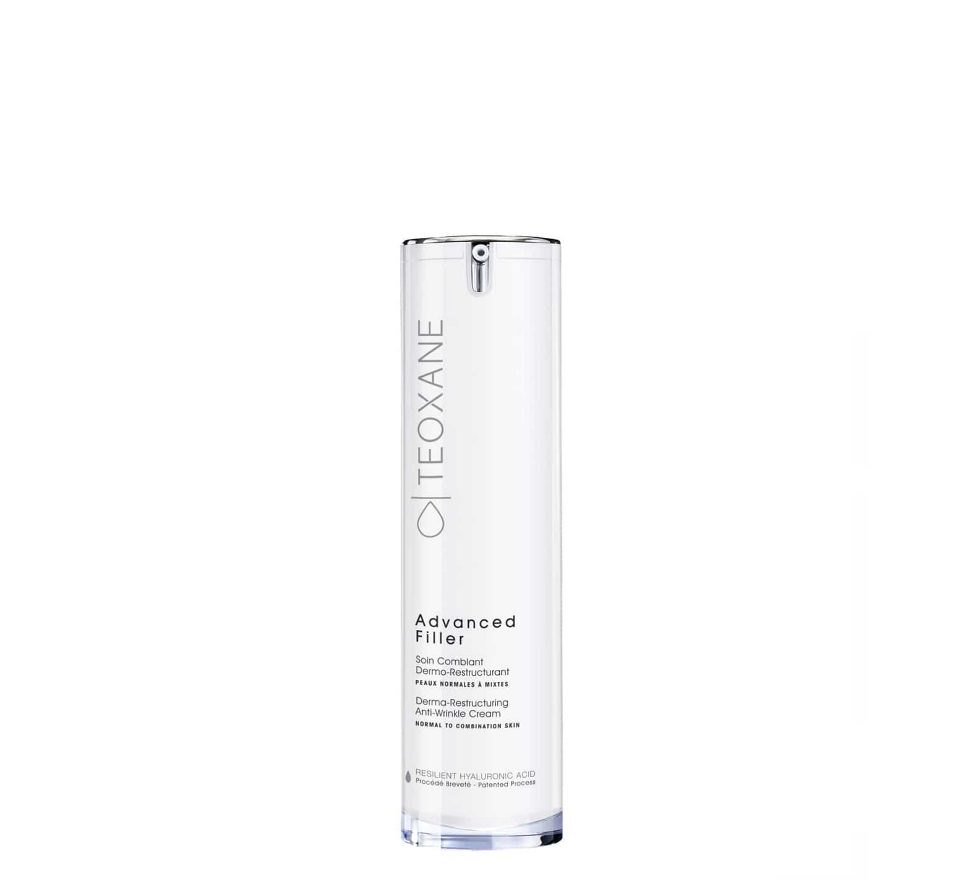 Teoxane Advanced Filler Normal to Combination Skin është një krem hidratues anti-plakje, i formuluar specifikisht për lëkurën normale deri te ajo e kombinuar. Ky krem është krijuar për të ndihmuar në reduktimin e rrudhave dhe linjave të holla, duke përmirësuar elasticitetin dhe tonin e lëkurës pa e rënduar atë. Teoxane Advanced Filler për lëkurë normale deri të kombinuar kombinon teknologjinë RHA® (Resilient Hyaluronic Acid) me përbërës që mbështesin kolagjenin dhe përbërës matifikues, të cilët kontrollojnë shkëlqimin e tepërt në zonat me yndyrë të lëkurës.